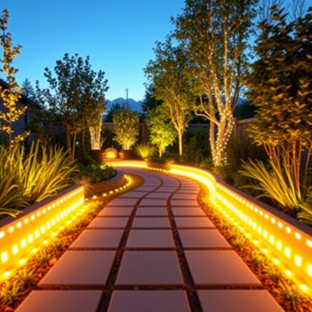 Enhance your garden with warm white LED strips along pathways. This creates a magical trail that lights up your outdoor space.