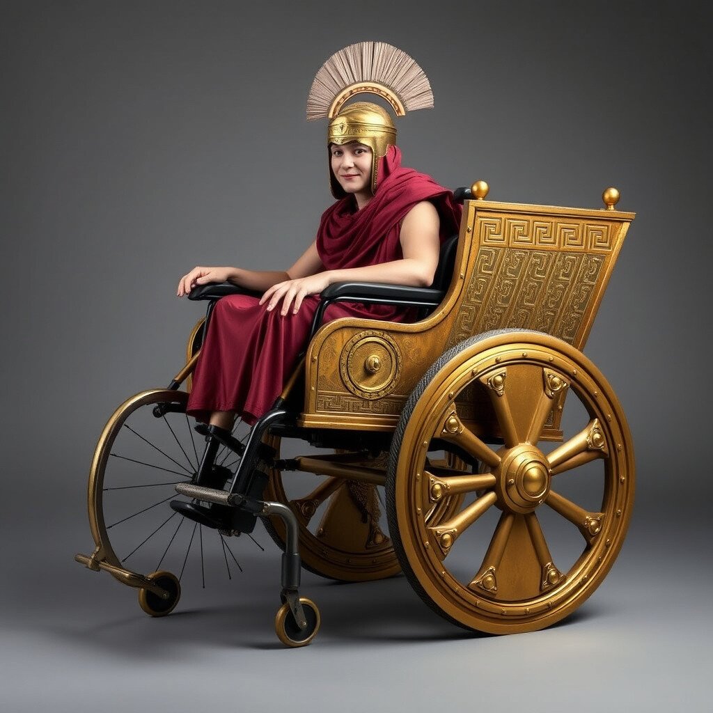 This theme is perfect for history lovers and fans of Greek mythology. The wheelchair becomes a powerful chariot, ready for the arena.