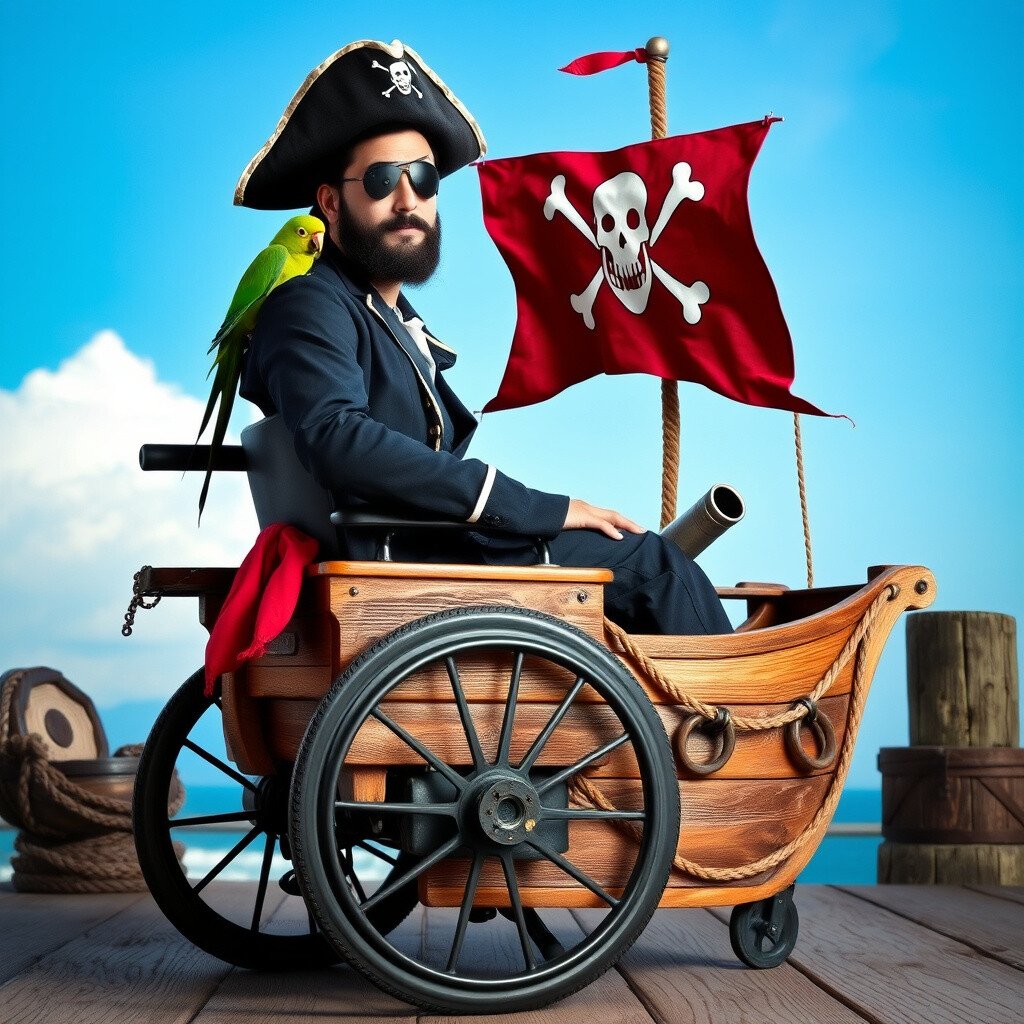 Set sail on an adventure by turning your wheelchair into a pirate ship. Use wooden textures, a pirate flag, and rope to create a seafaring vessel. Dress as a pirate captain with a hat, eye patch, and a trusty parrot on your shoulder.