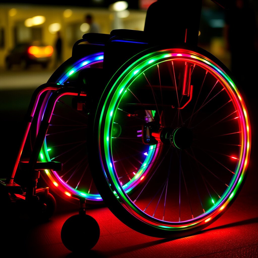 Add some sparkle to your ride with snazzy wheelchair lights. From twinkling fairy lights to bold LED strips, they make your chair look magical and ensure you’re visible at night.