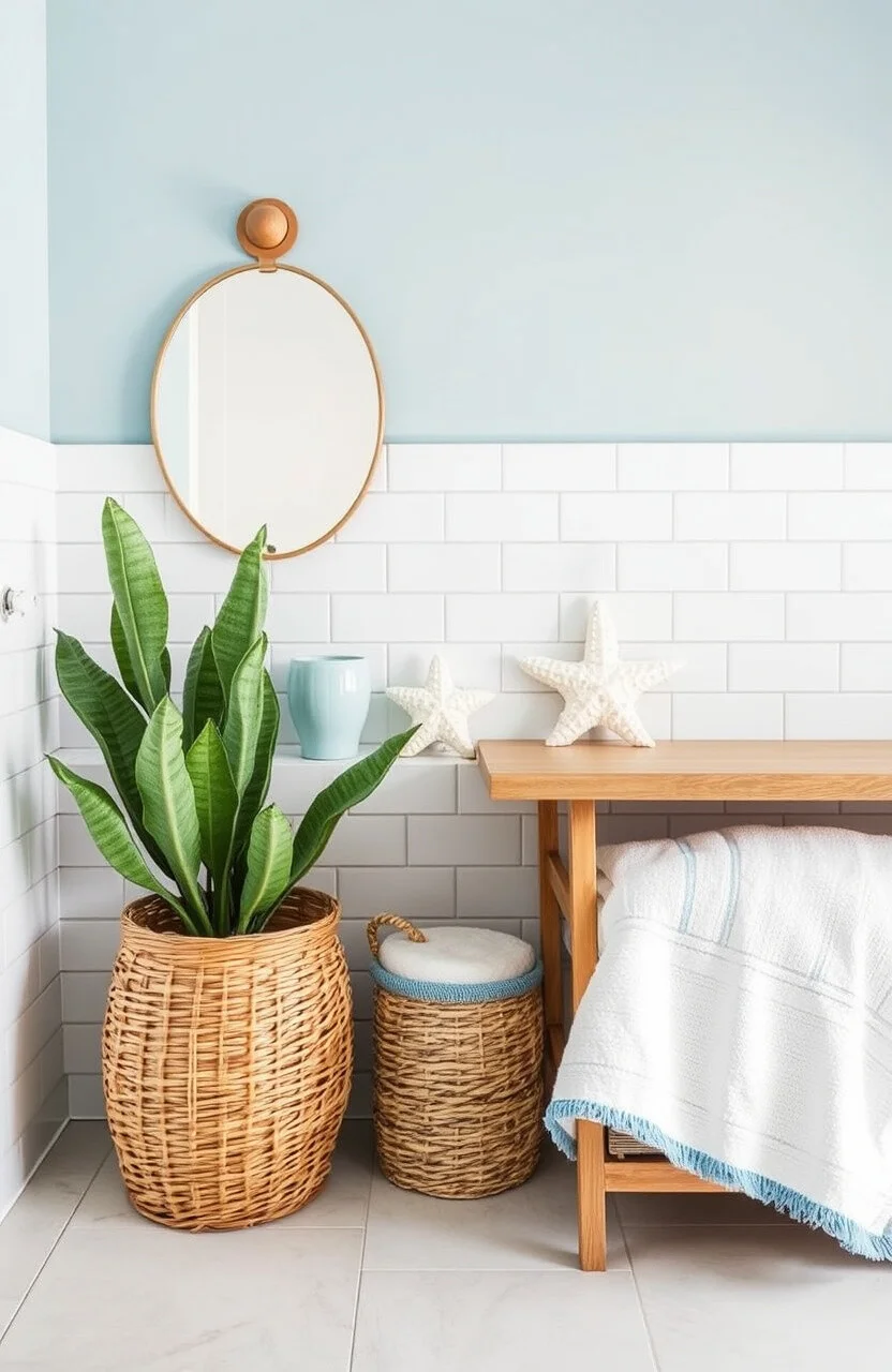Consider using seashell decor and soft blues. They complement the clean lines of subway tiles.