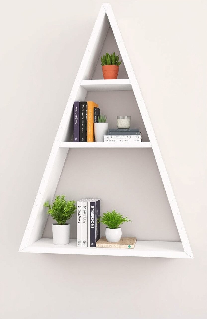 The unique triangular design makes it a standout piece. Decorate with plants or small sculptures for a cozy nook.