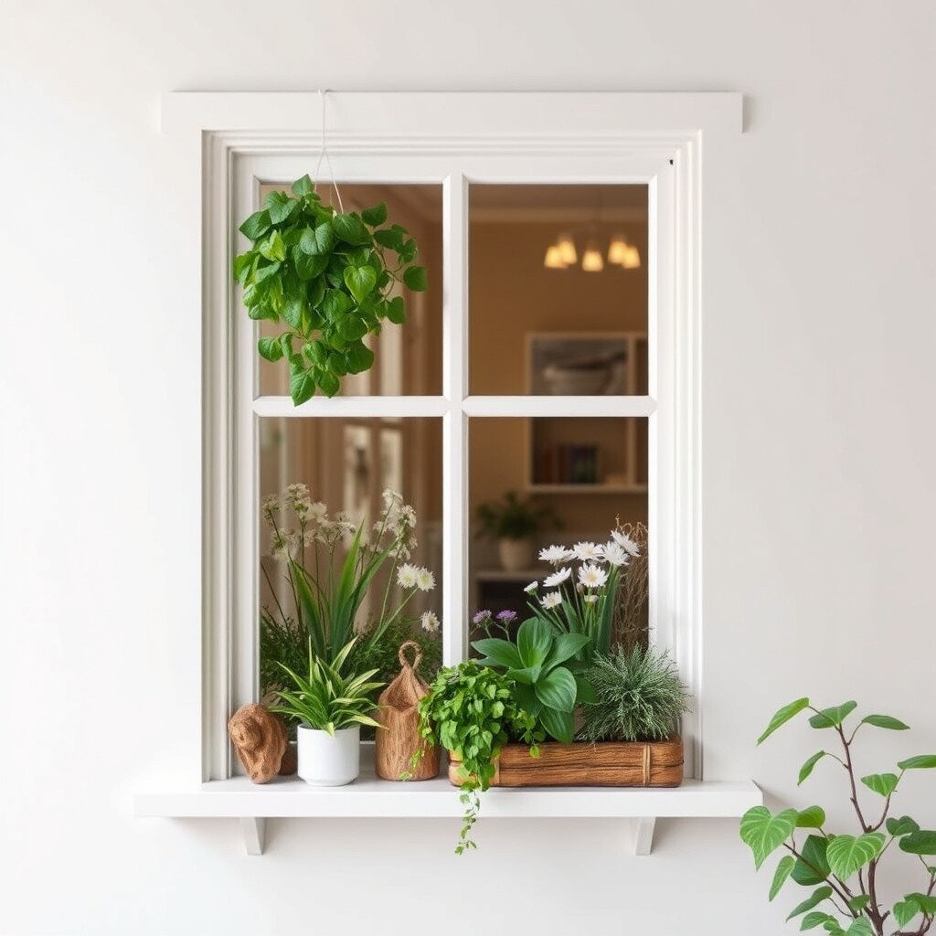 Personalize it with your favorite plants or flowers that thrive in your environment. Experiment with hanging plants or small indoor trees for depth. Nature displays are timeless and can be adjusted for any season.
