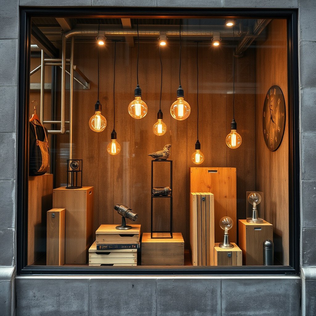 Add a touch of urban chic with an industrial-themed display. Use metal, exposed bulbs, and concrete textures. This modern setup offers a cool, edgy vibe.
