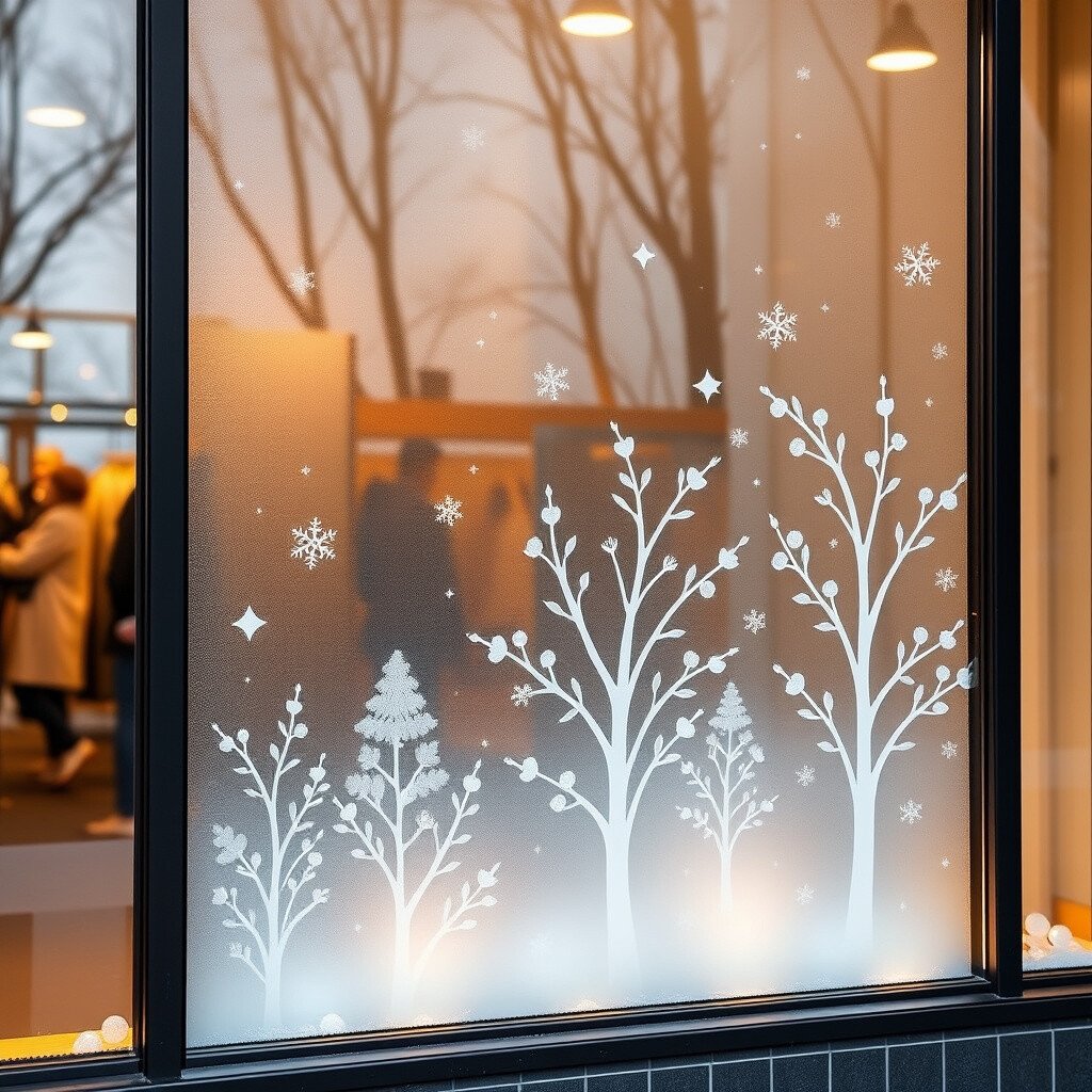 Create an elegant, frosty look with decals that mimic frosted glass. These add a subtle touch of winter charm.