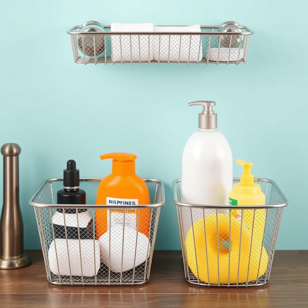 Keep your bathroom tidy with wire mesh caddies. Perfect for storing toiletries, shampoos, and bath toys, these caddies bring organization to chaos.