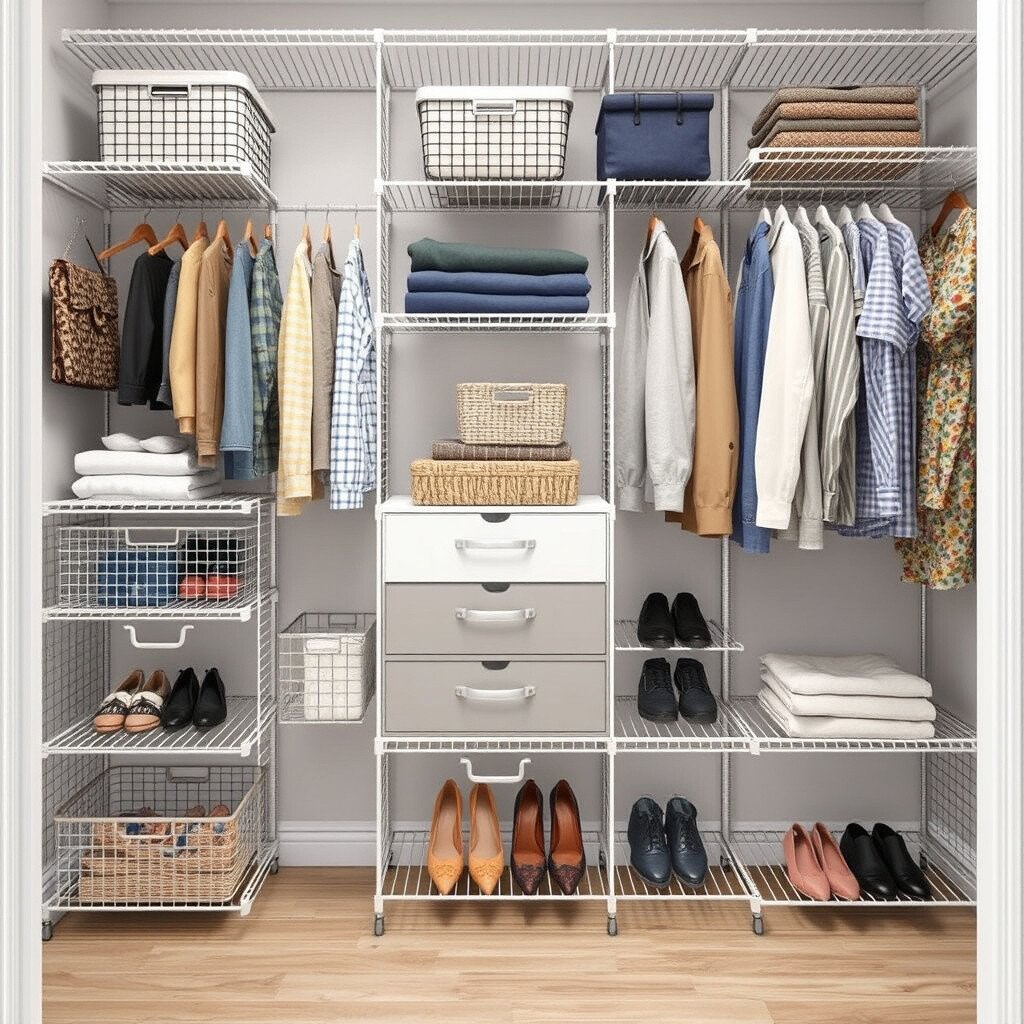 Revamp your closet with wire mesh organizers. These can include shelves, drawers, and baskets, providing a comprehensive solution for clothing, shoes, and accessories.