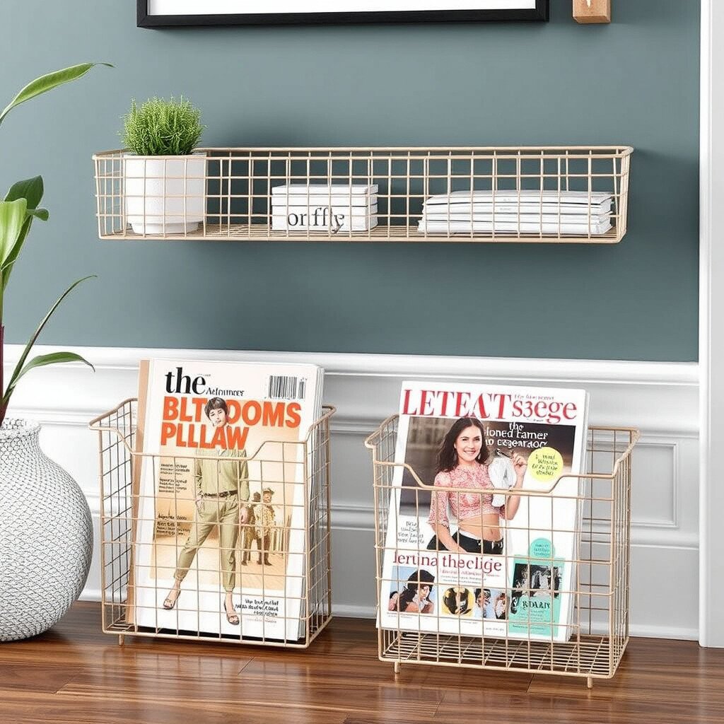 Keep your reading materials tidy with wire mesh magazine racks. These racks can be placed in the living room, bathroom, or any cozy reading nook.