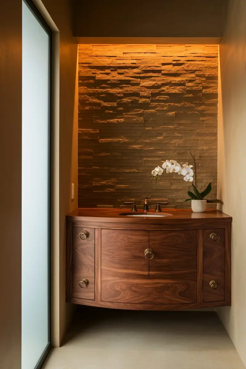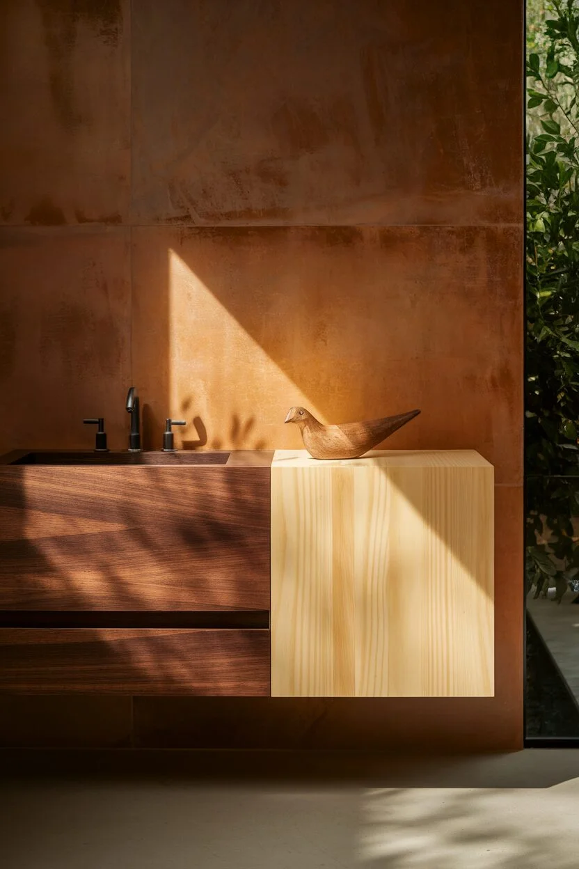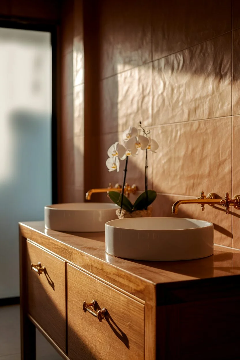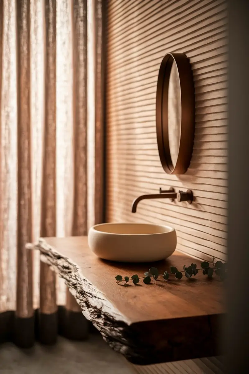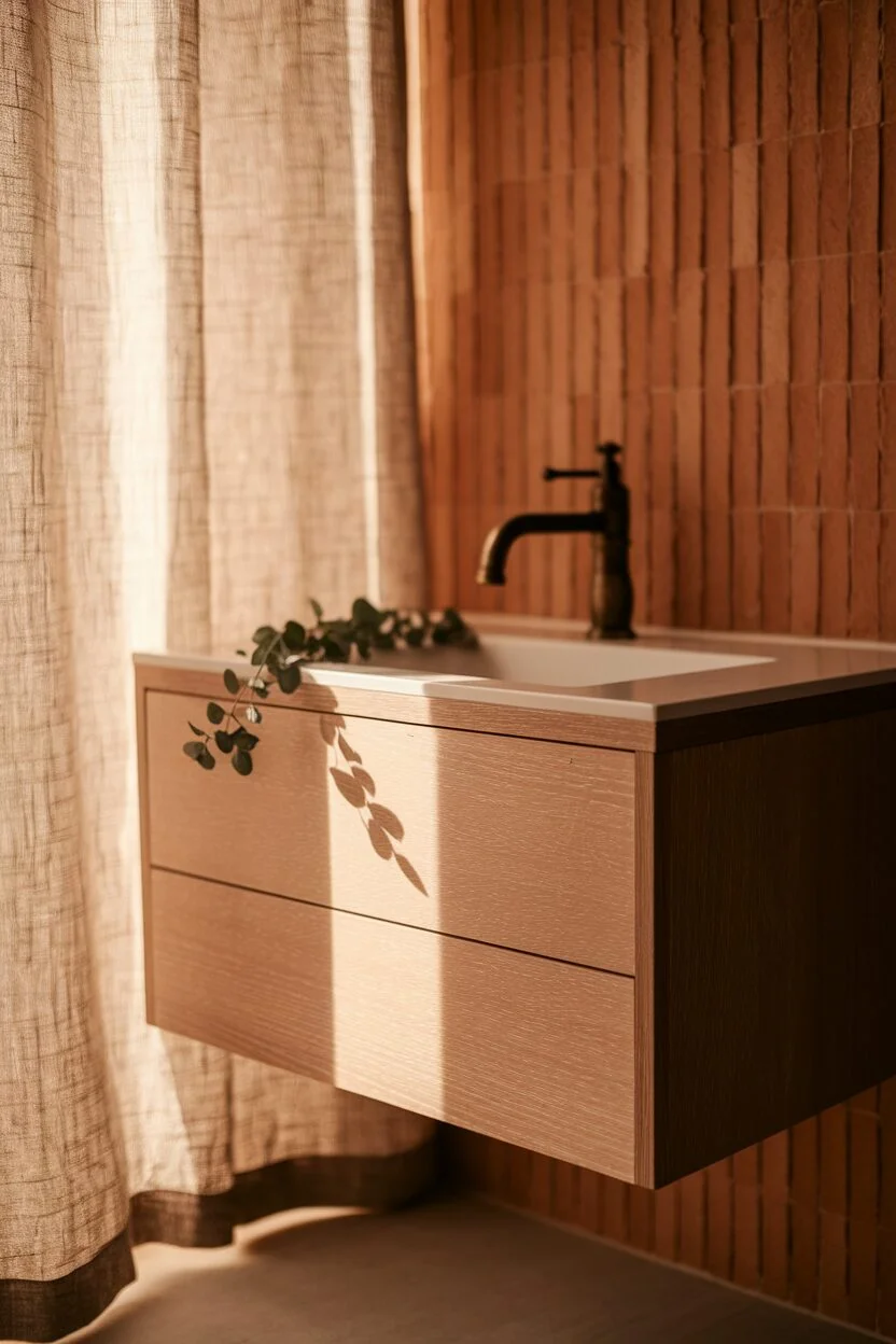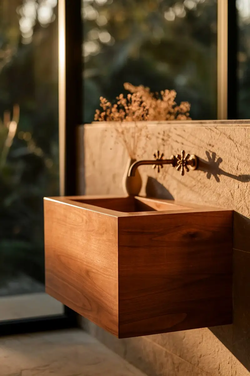 Consider using a vessel sink for an added touch of luxury that complements the natural wood. This can elevate the whole space and make it feel extra special!