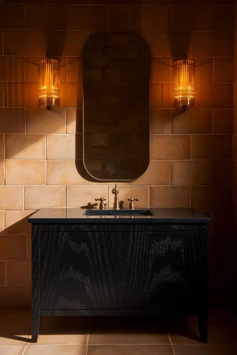 Don’t shy away from adding some bold wall art or colorful towels to balance the dark vanity. It’s all about creating a space that feels lively and inviting!