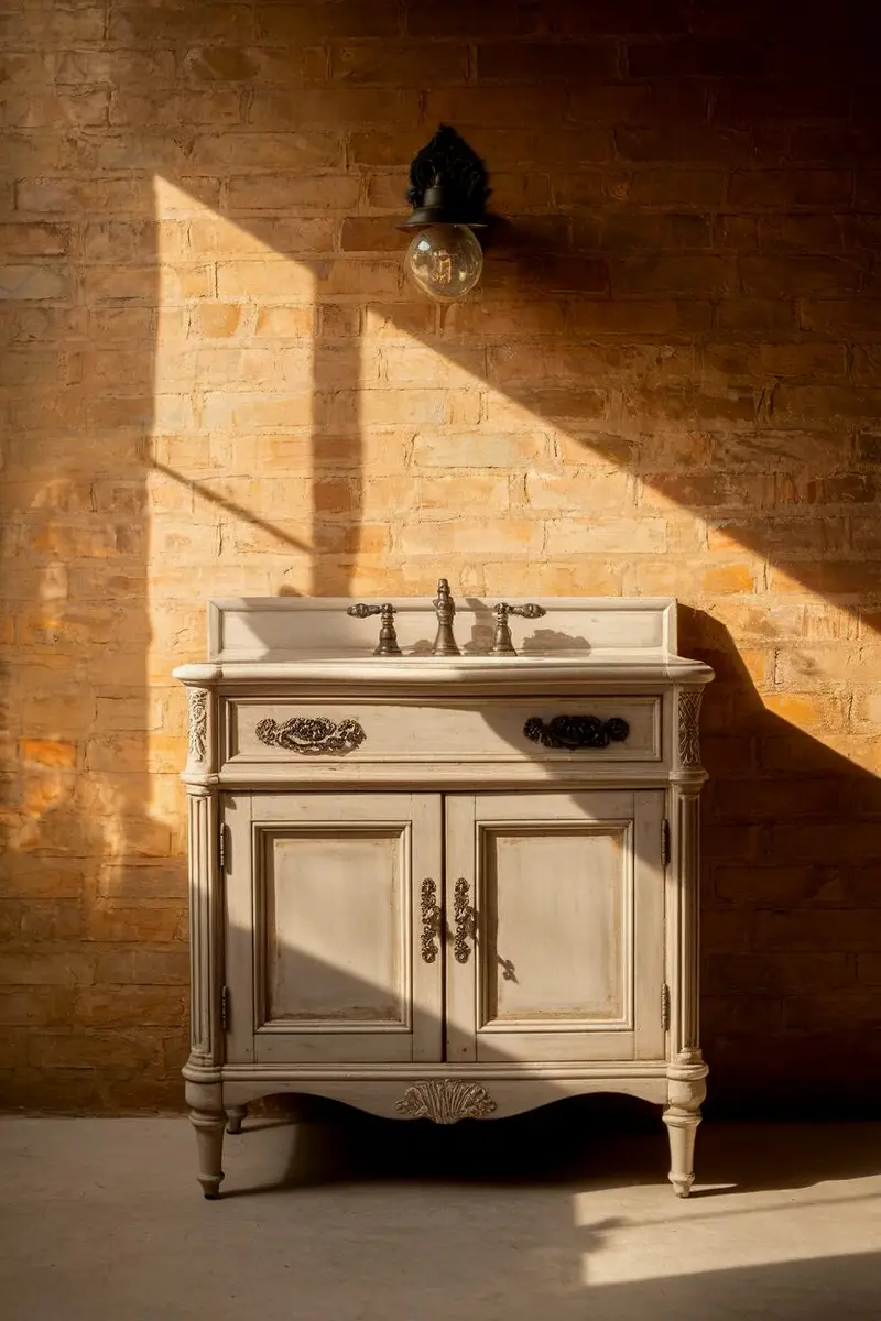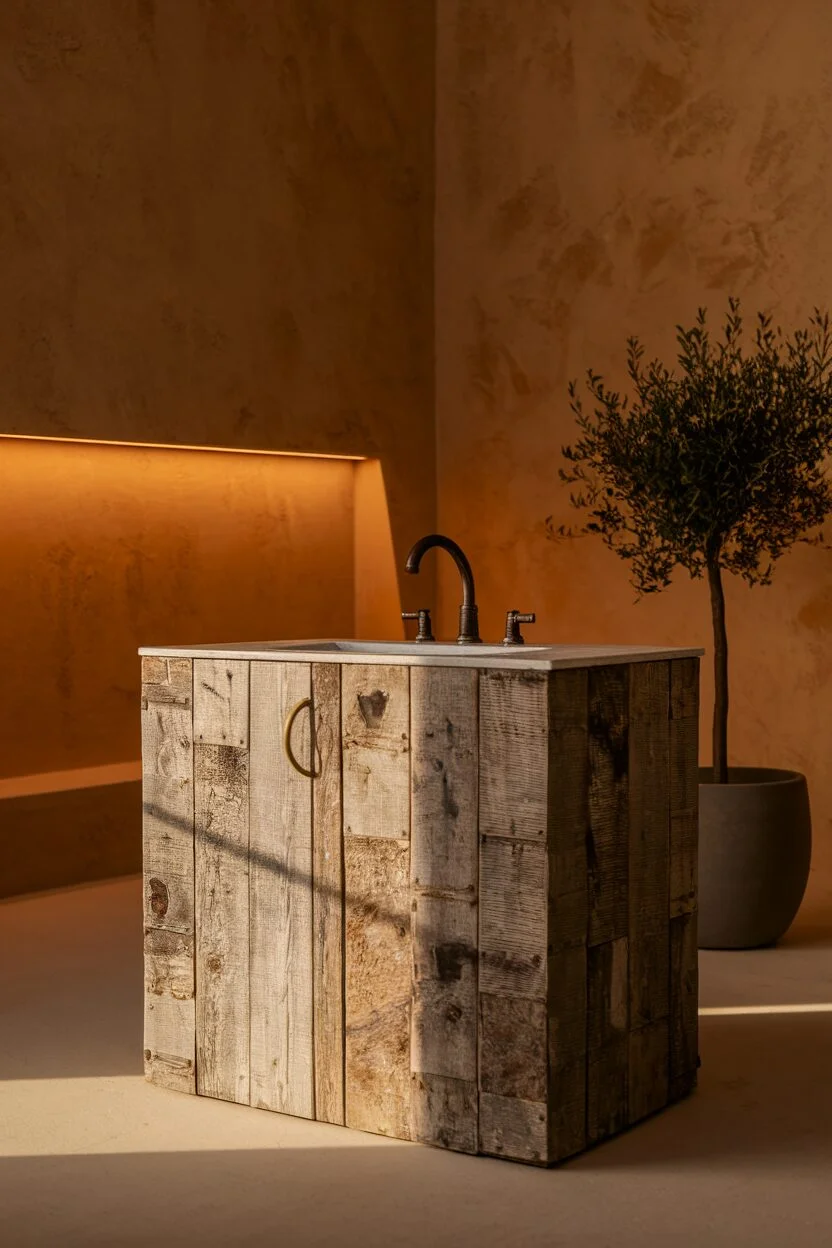 Each piece of reclaimed wood has its own history, making your vanity one-of-a-kind. You can pair it with vintage mirrors to enhance that charming rustic vibe.