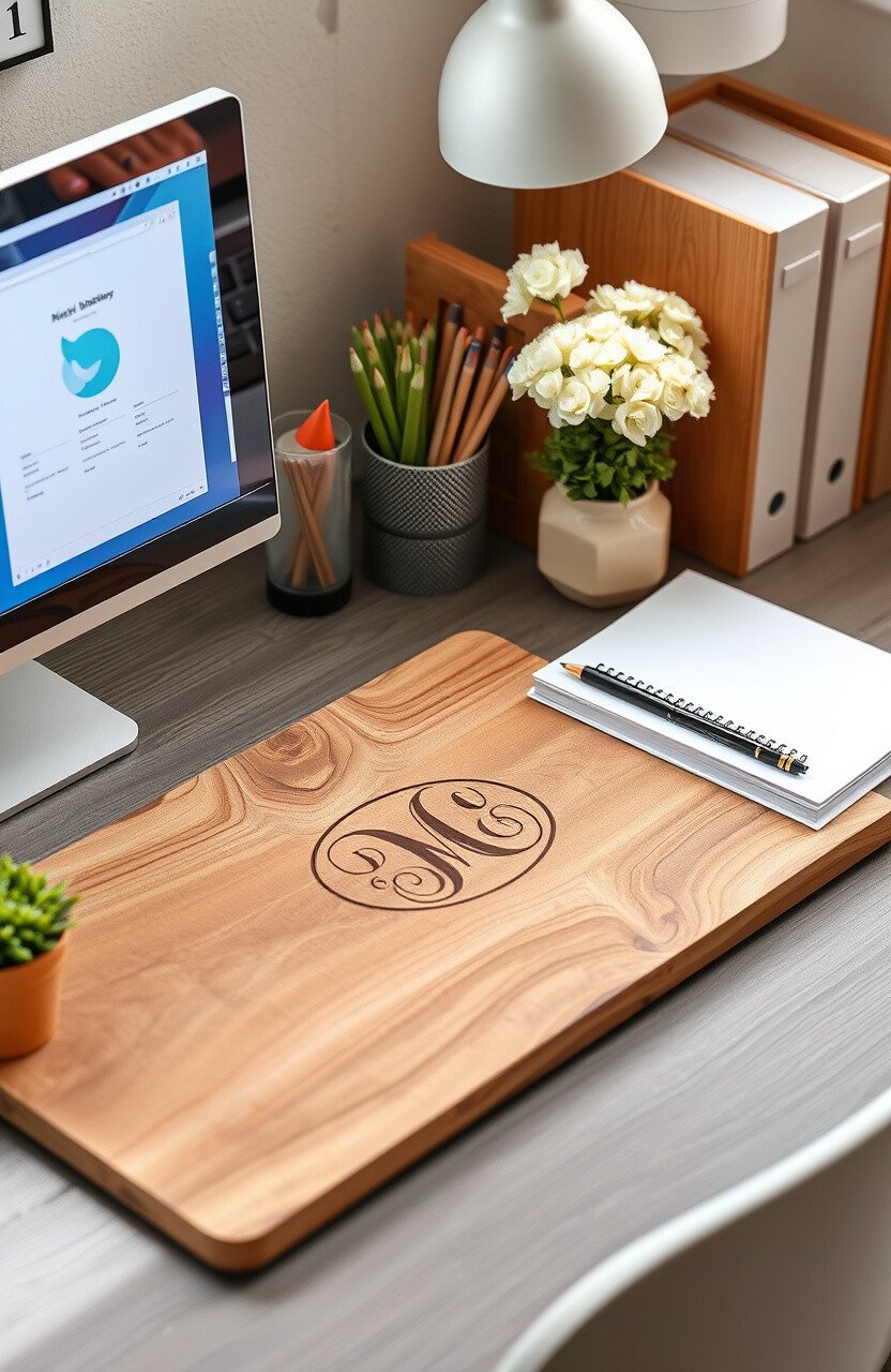 Consider adding a monogram or pattern for extra flair. They add a stylish touch to your desk.