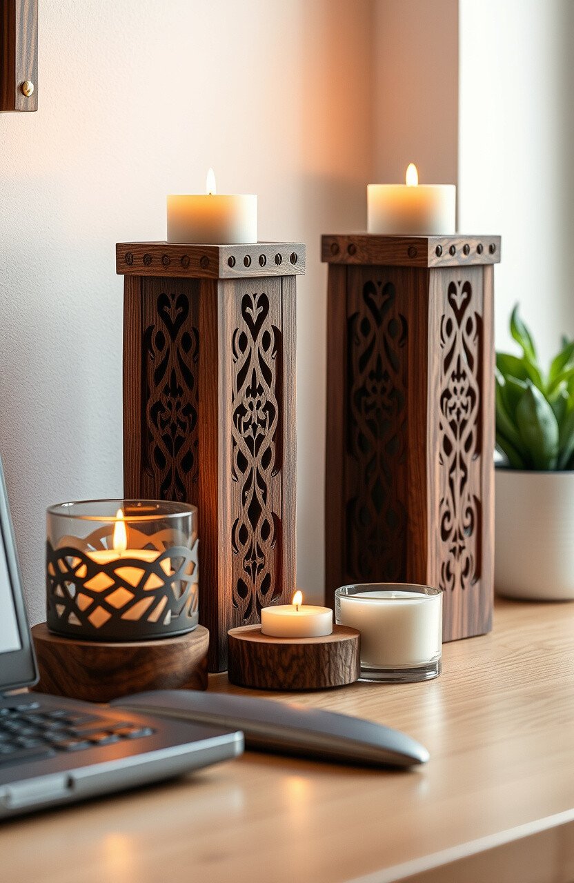 Wooden candle holders create a cozy atmosphere. They add warmth and charm to your space.