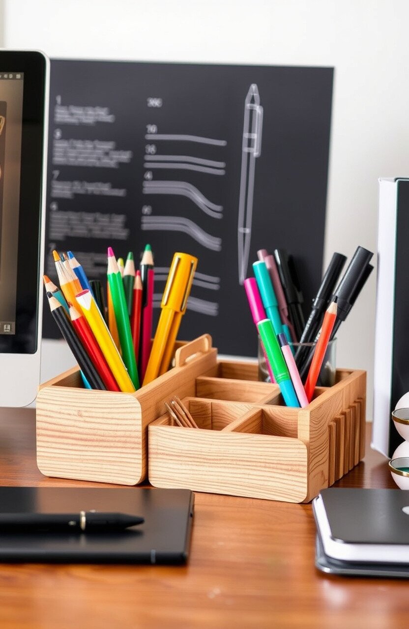 Think about wooden pencil holders neatly organizing your pencils. These holders add rustic charm to your desk.