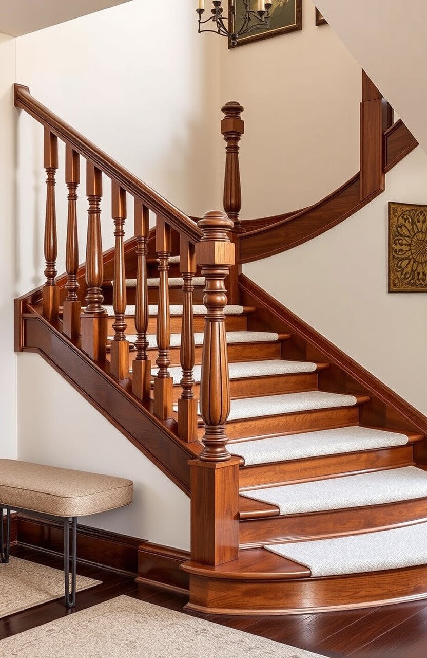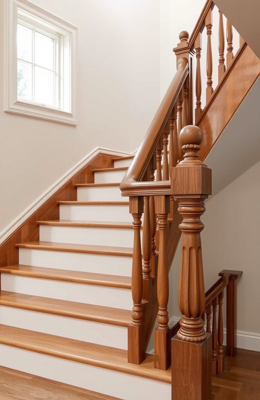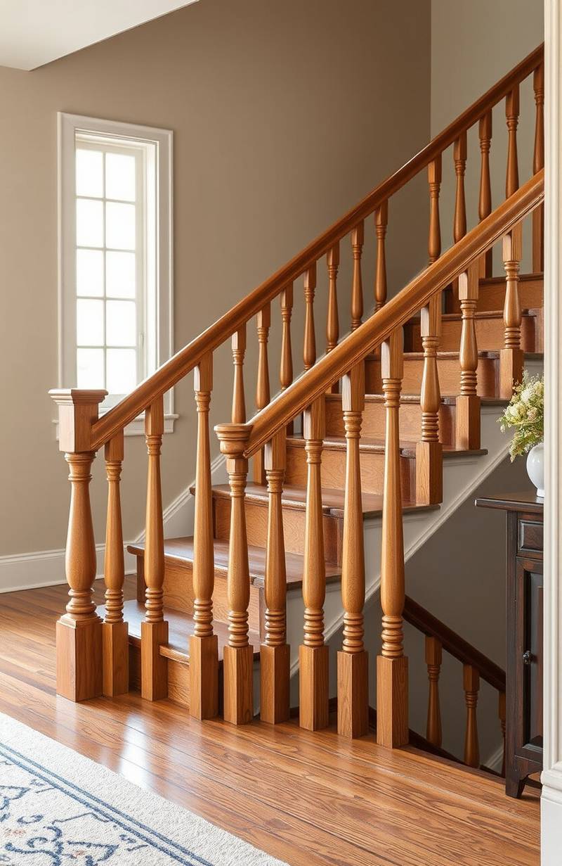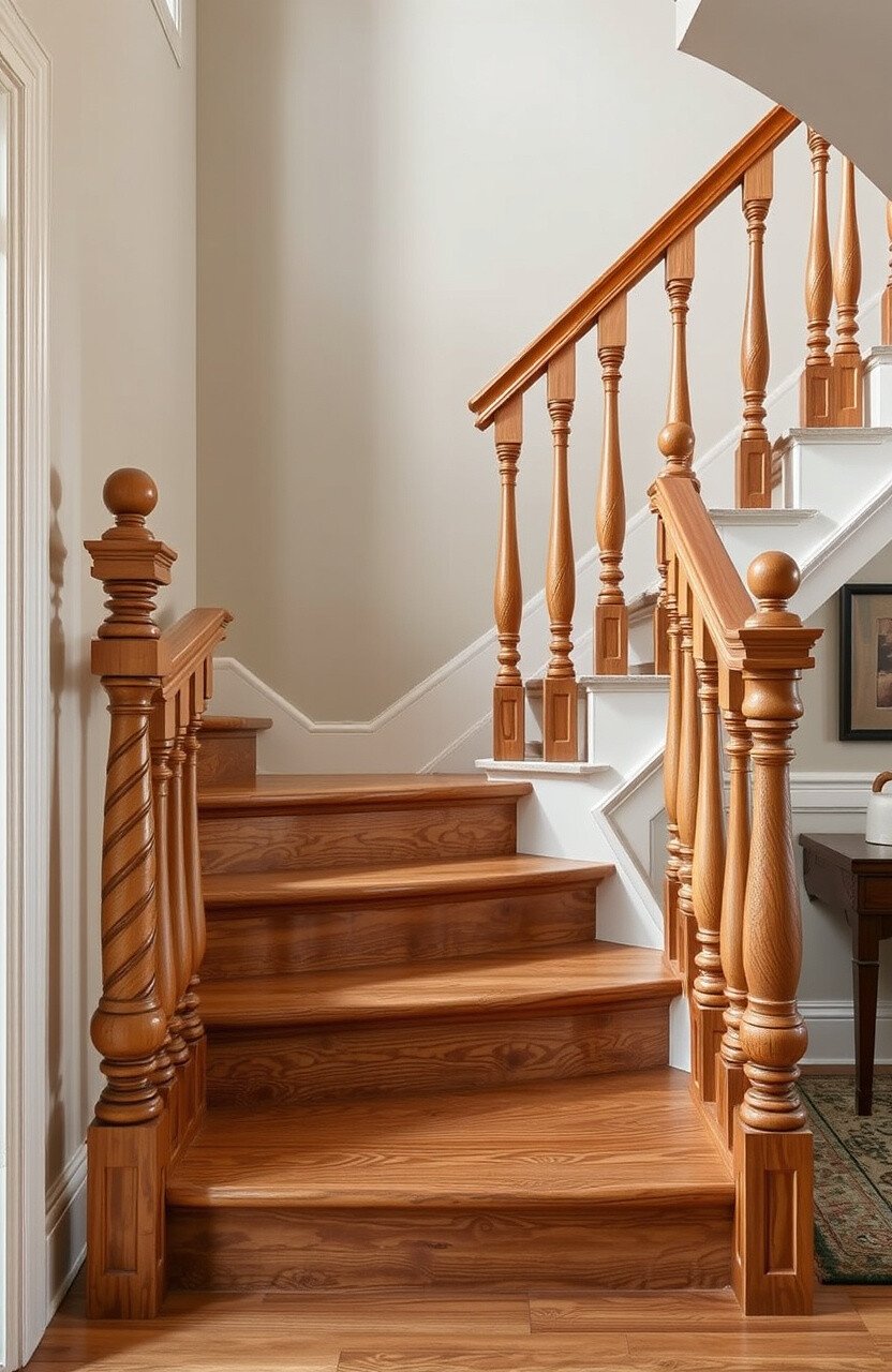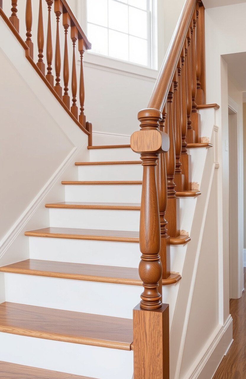Pair them with a deep wood finish to enhance their beauty. You’ll love how they transform your stairway into a timeless classic.