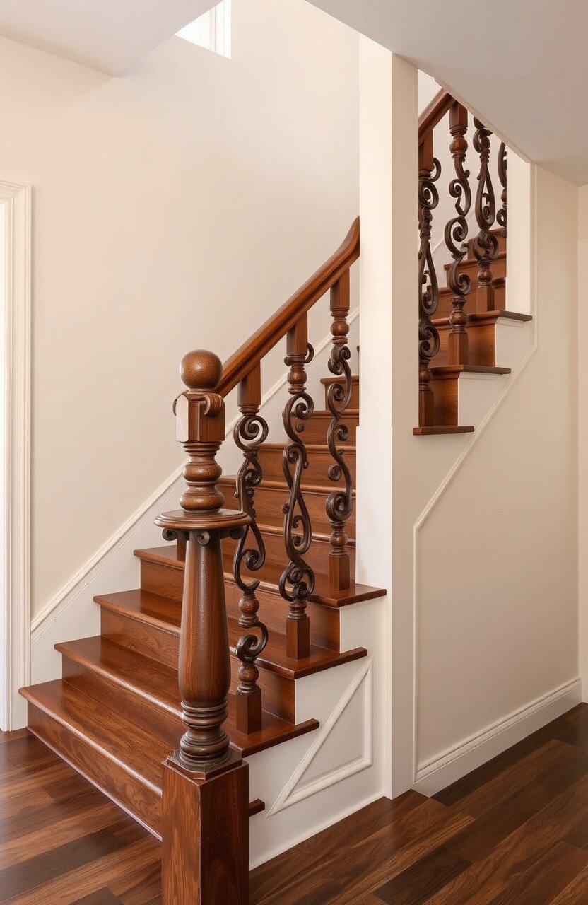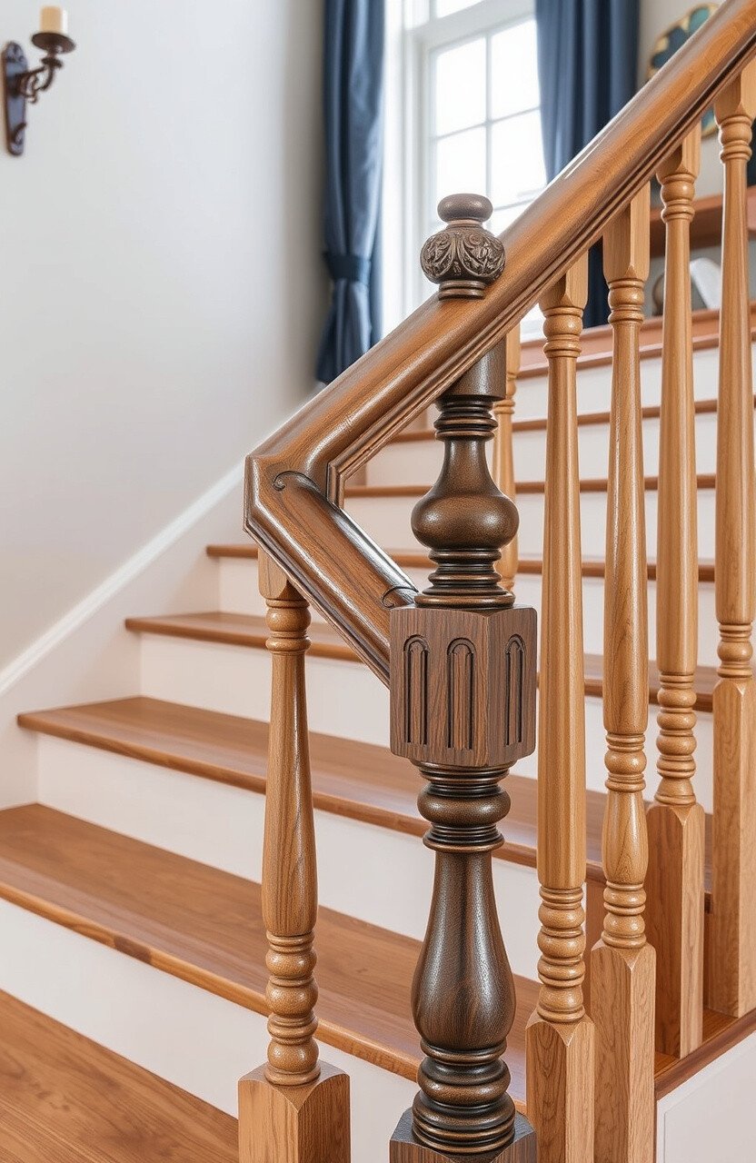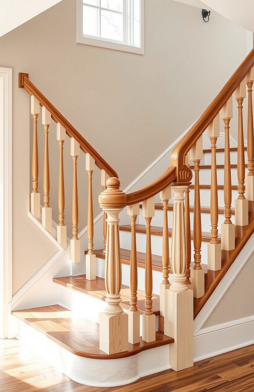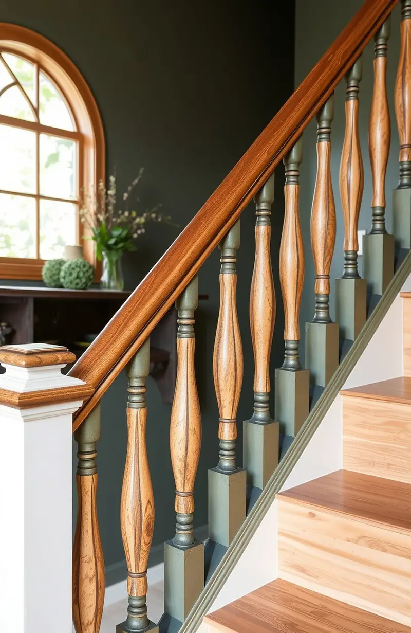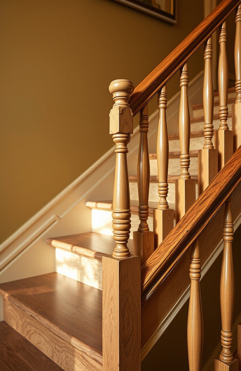 Pair them with a deep wood finish to enhance their beauty. You’ll love how they transform your stairway into a timeless classic.
