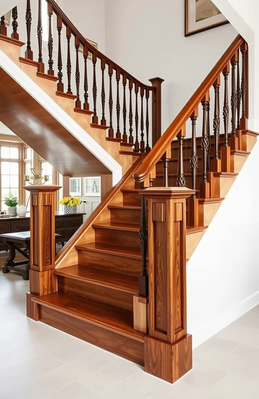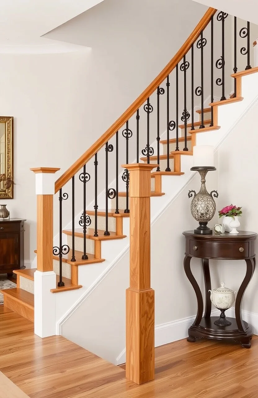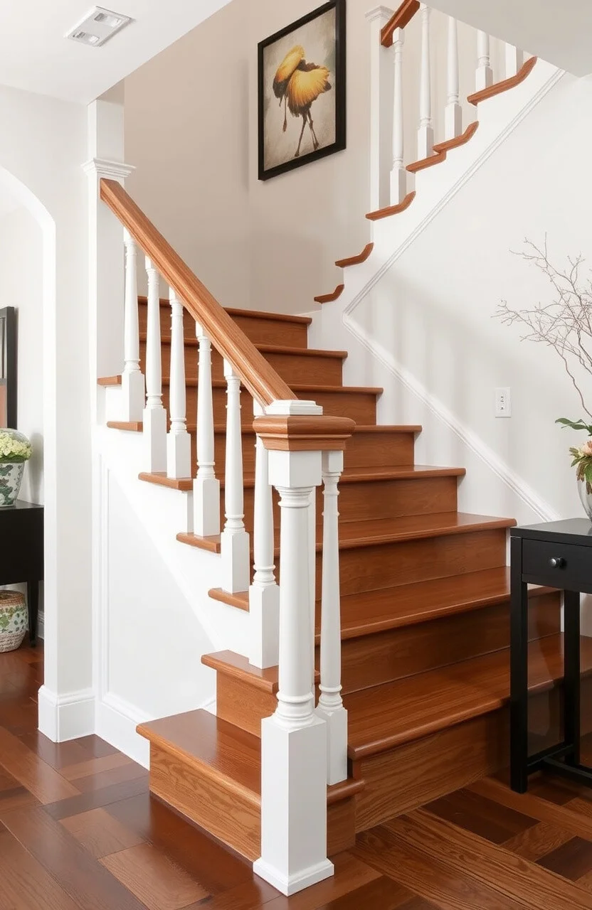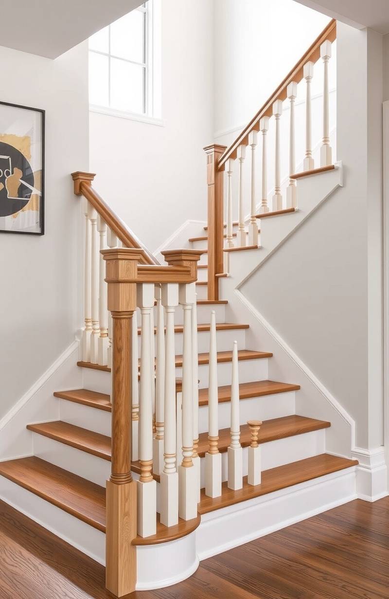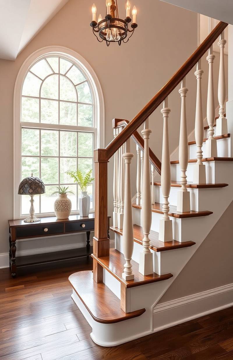 Pair them with a deep wood finish to enhance their beauty. You’ll love how they transform your stairway into a timeless classic.