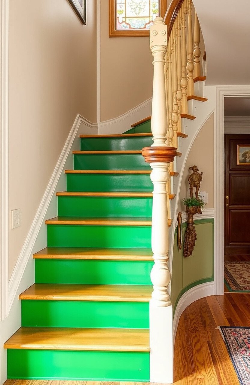 Pair with green plants and earthy tones for a harmonious look. It’s like having a mini garden right on your staircase.