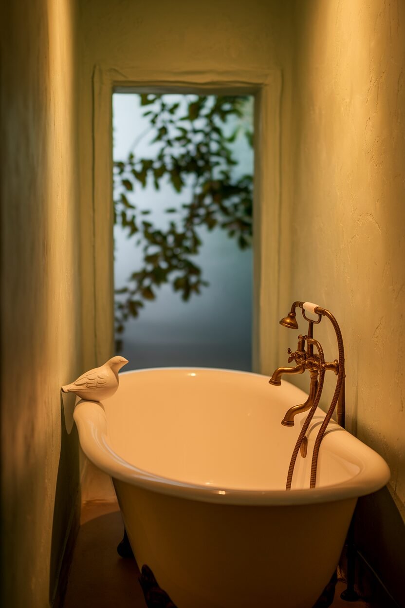 To create a full relaxing experience, consider adding soft towels and soothing bath products. A cozy bathrobe hanging nearby can also invite you to unwind.