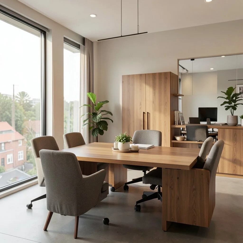 Wood details can make a workplace feel calm and grounded. They add a natural look that balances screens, metal, and plastic.