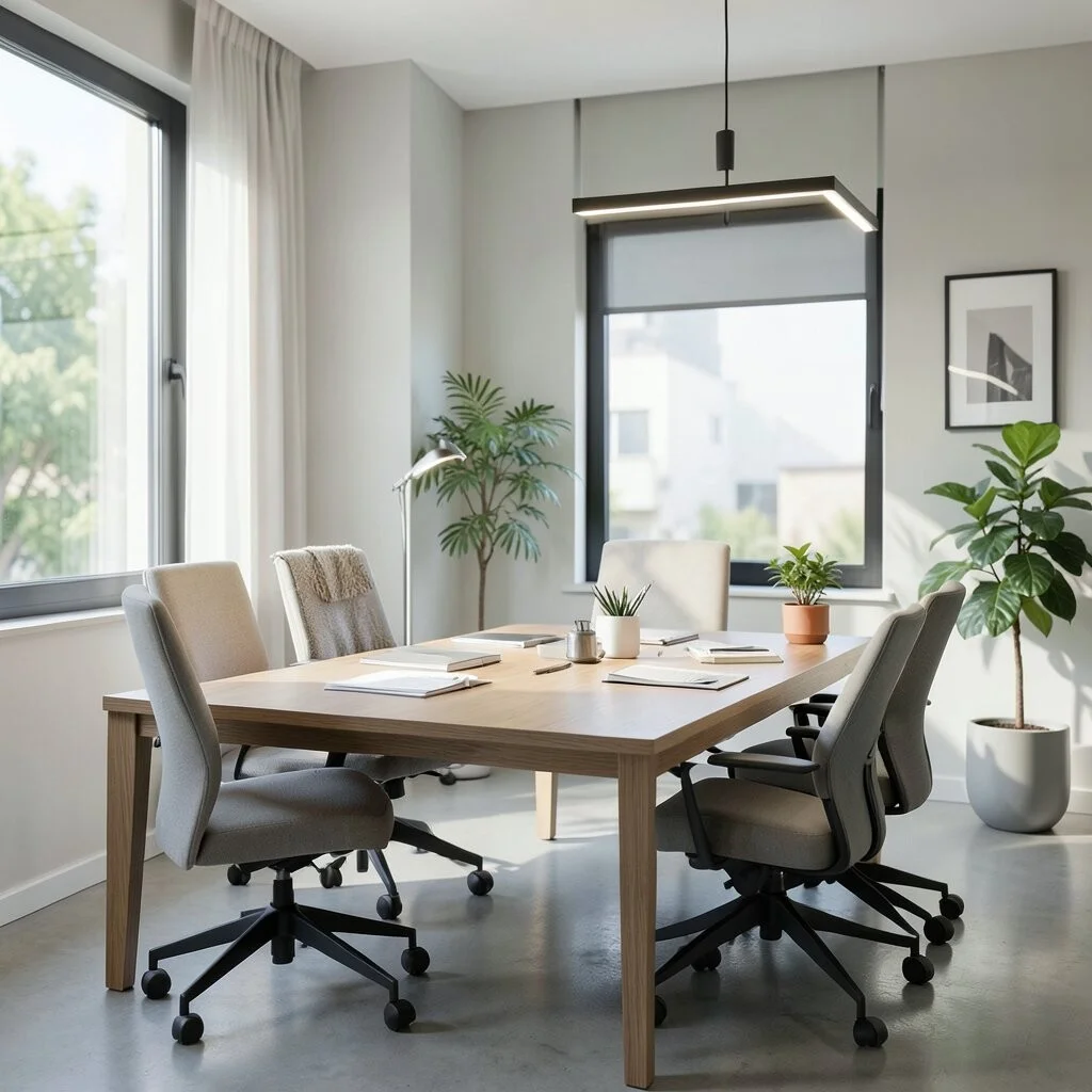 Soft lighting can completely change how a workplace feels. It makes the room glow in a gentle way instead of feeling harsh and flat.