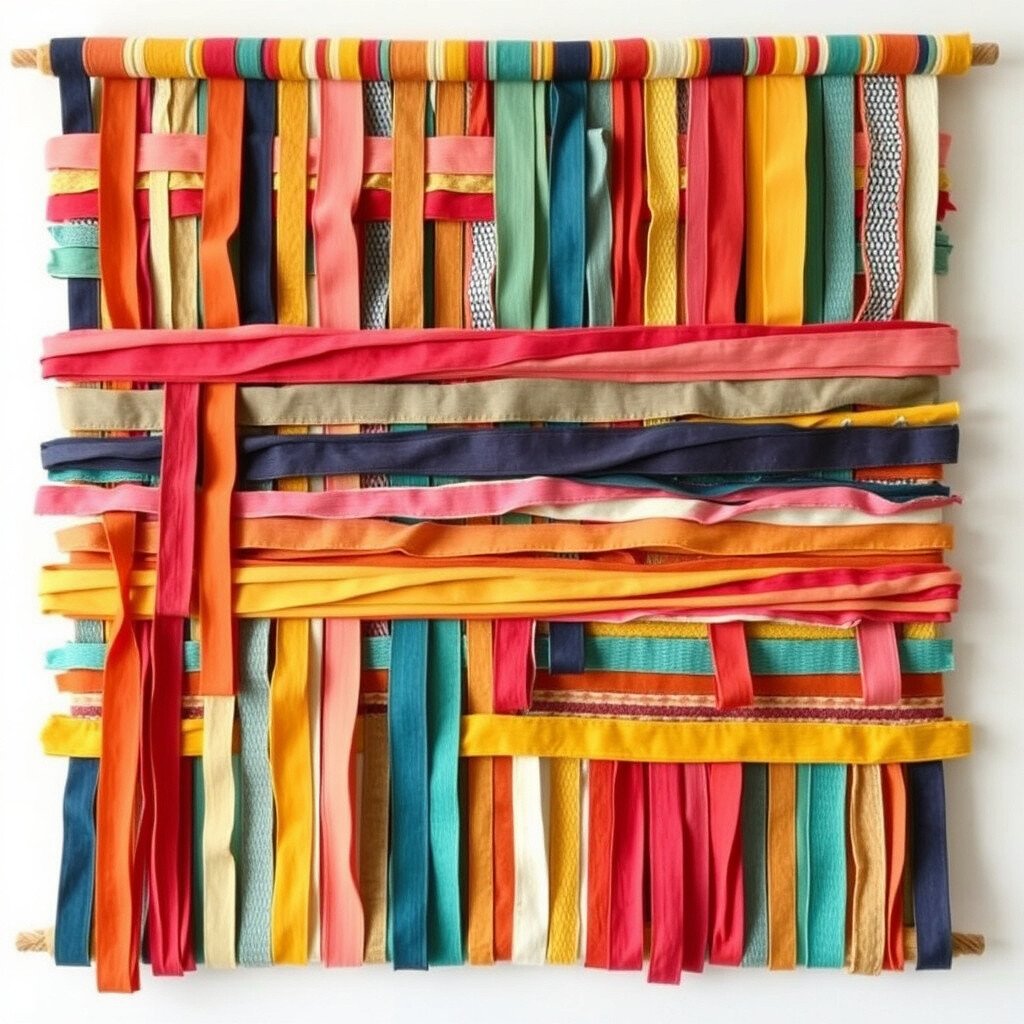 Adorn your walls with art made entirely from woven fabric strips. Pick colors that match your room’s theme or go wild with contrasting hues. This craft allows you to express your artistic side without needing a paintbrush.