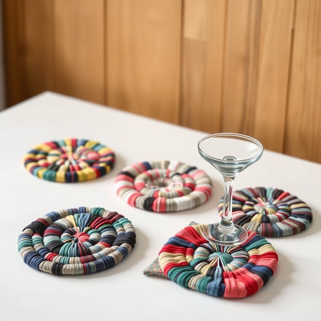Protect your tables with coasters that are not only functional but also decorative. Weave fabric strips into circles or squares to create coasters that fit your style.