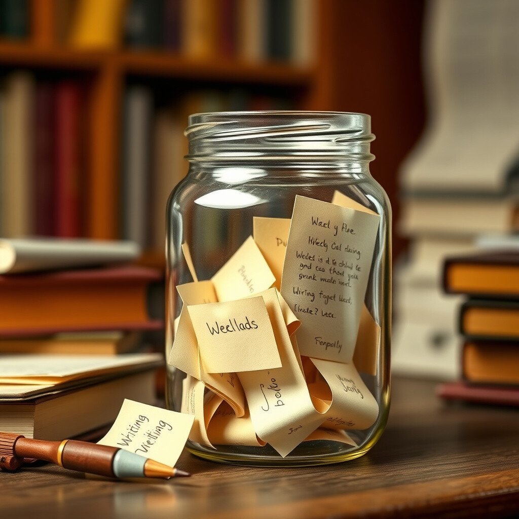 Grab a jar and fill it with pieces of paper, each having a different writing prompt. Shake it up, pick one, and start writing! It’s like a box of chocolates; you never know what you’re going to get.